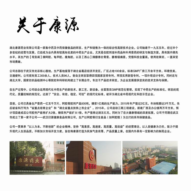 康源藥業(yè)公司坐落在中國藥谷——湖北省葛店經(jīng)濟技術(shù)開發(fā)區(qū),占地面積七十余畝,擁有生產(chǎn)設(shè)備一百多臺套,建有標準的 GMP 廠房一萬余平方米。現(xiàn)有員工 150 名 , 其中專業(yè)技術(shù)人員 40 名,中級以上專業(yè)技術(shù)人員 20 多名。公司建立了非常完善的生產(chǎn)管理制度和嚴密的質(zhì)量保證體系,質(zhì)保部化驗室配有先進完備的檢驗設(shè)備,員工上崗前都要經(jīng)過嚴格的培訓,藥品生產(chǎn)嚴格按照 GMP 的要求進行,員工的一切行為都依規(guī)章制度而行,廠區(qū)環(huán)境優(yōu)美,生產(chǎn)、生活秩序井然。康源是一個名副其實的現(xiàn)代化花園工廠。