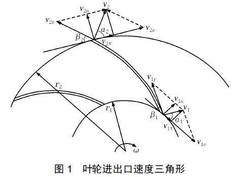 葉輪中制冷劑氣體的流動(dòng)速度三角形如圖1所示。