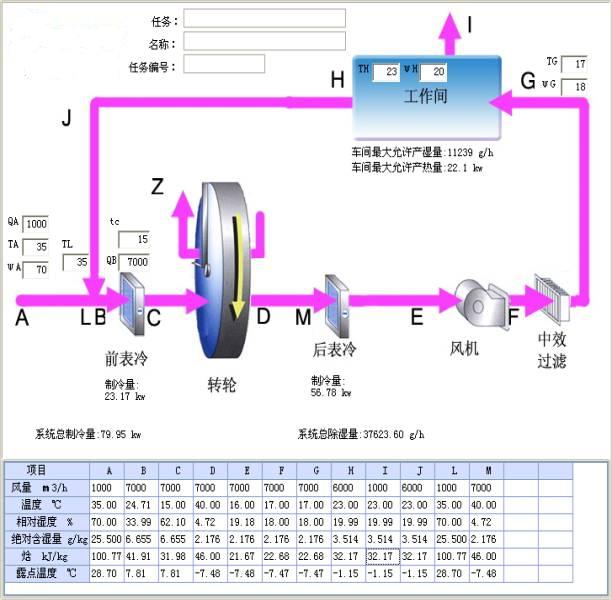 ★ 首先利用冷凍去濕原理,把室外高溫高濕度空氣降溫去濕后供給轉輪除濕機進行吸附除濕。達到高溫低濕空氣后供給送風(后)冷卻器冷卻達到除濕冷卻目的。本機組可進行客戶要求進行調節溫度。